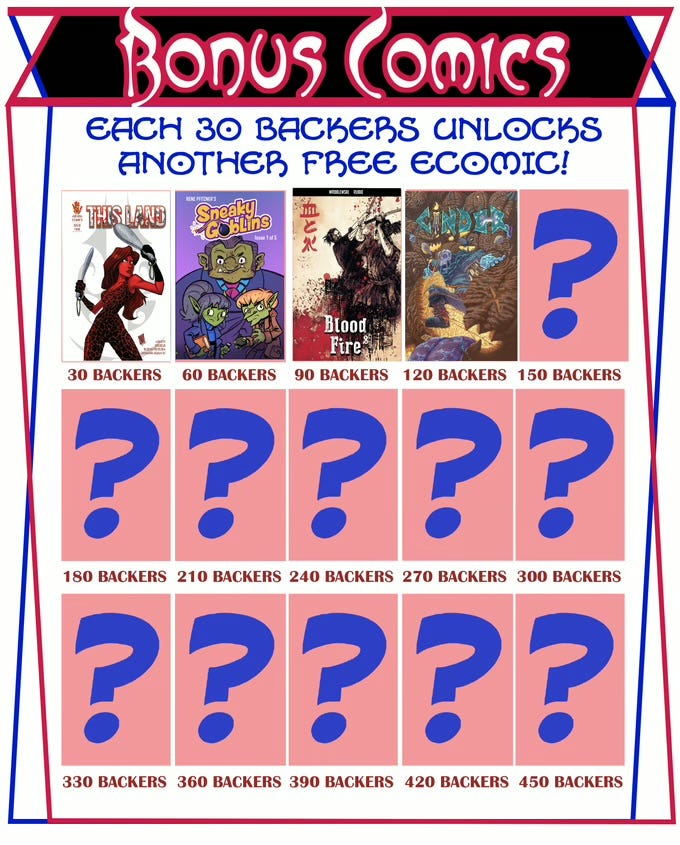 🌟ALL BACKERS get a bonus bundle of up to 15 eComics!